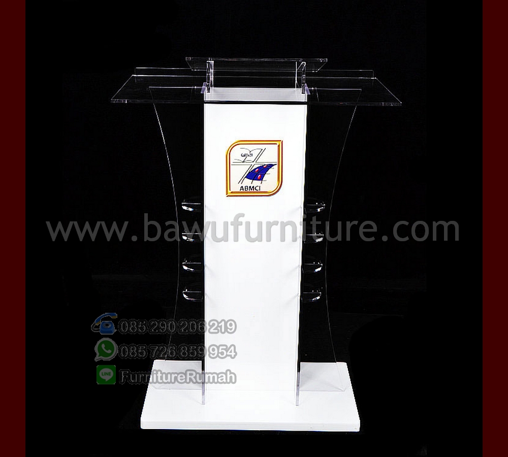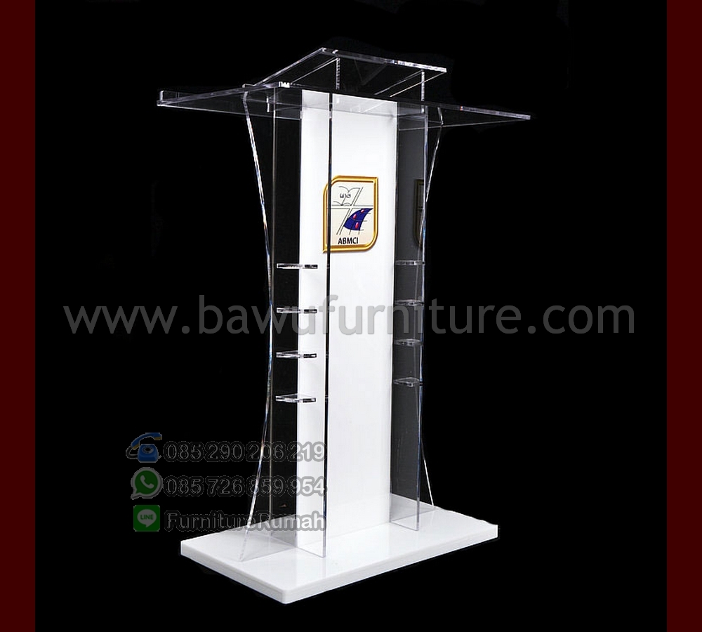 Mimbar Gereja Minimalis, tidak dipungkiri lagi bahwa kebutuhan dalam berpidato dibutuhkan Podium untuk di depan sebagai sarana dalam menyampaikan beberapa tex yang memudahkan dlaam berbicara ini tak bisa ditinggalkan untuk kebutuhkan Mimbar yang sangat sederhana ini. kami memiliki beberapa model Mimbar Minimalis yang bisa dijadikan produk unggulan dalam sebuah Gereja maupun sekolah dan instansi manapun, dengan adanya produk kami ini yang menggunakan bahan utama Acrylic dalam mengerjakan Mimbar Gereja Minimalis ini dengan kombinasi Kayu Mahogany yang kami finishing cat Duco Putih sangat elegant dan pastinya terkesan Mewah dan Modern untuk ditempatkan didepan dalam menentukan podium pidatonya dengan desain Mimbar Minimalis Akrilik.
