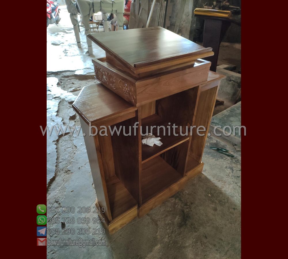 Jual Mimbar Gereja Suara Kebenaran Injil ( GSKI ) dari kayu jati mutu bagus dengan model minimalis terbaru karya jepara untuk sarana ceramah atau ibadah keagaan umat kristiani. Serta produk ini bisa anda pesan secara online di bawufurniture.com dengan aman dan terpercaya. Dan cara pemesanannya sangat mudah dan gampang sekali.