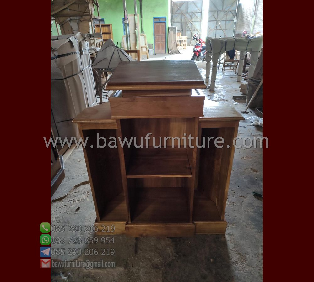Bawufurniture.com menyediakan banyak ready stok untuk mimbar atau Podium Minimalis model terbaru. Hal itu dikarenakan banyak sekali yang memesan model podium satu ini untuk keperluan pidato ataupun ceramah keagamaan. Tentunya kami juga melayani penjualan online hingga ke seluruh pelosok Indonesia.