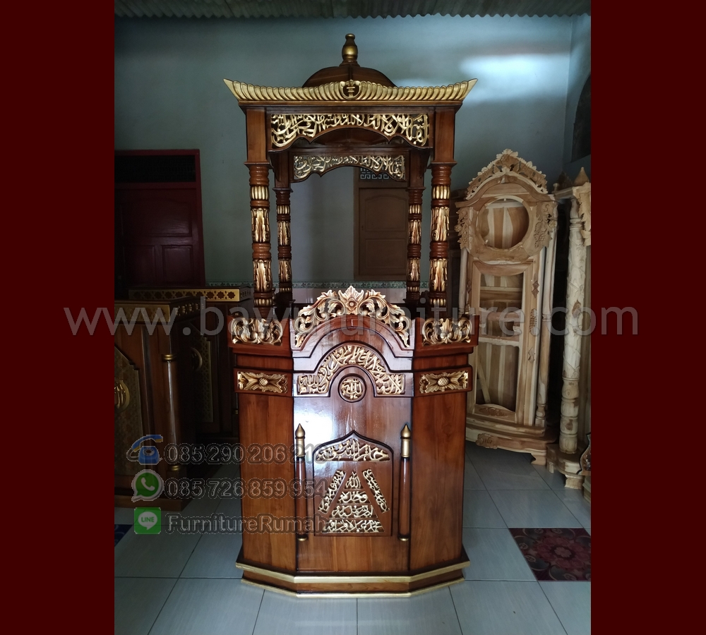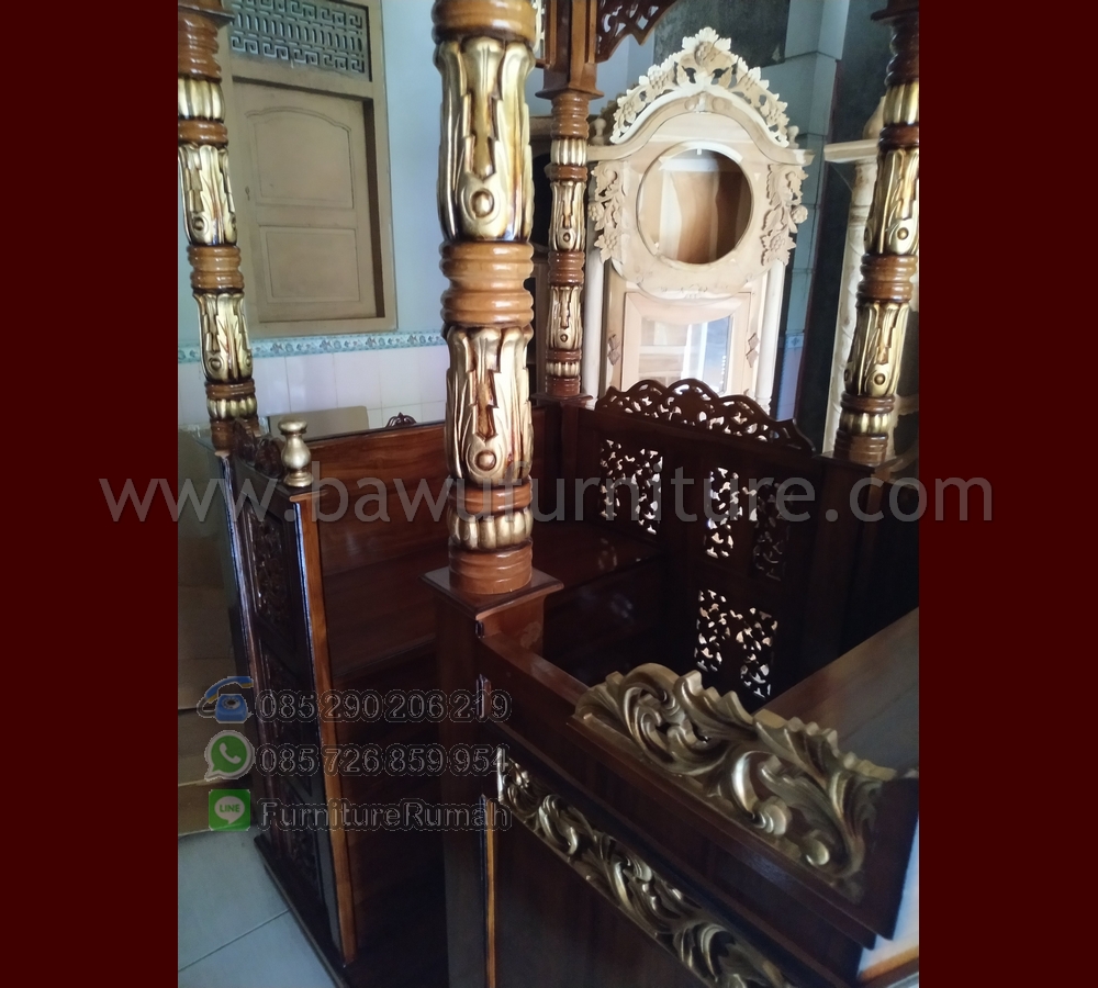 Furniture Masjid, jangan sampai ketinggalan untuk mendapatkan Furniture yang cocok untuk masjid ini, dengan hadirnya Mimbar Ukiran Masjid memudahkan untuk kebutuhakn dalam berceramah dalam lingkungan masjid masjid Besar dengan desain Ukiran yang bagus dan mempunyai sedikiti pilar sebagai contoh didepannya, kami Bawu Furniture sebagai alternatif yang menjual produk Mimbar tersebut dengan kualitas yang tidak perlu diragukan lagi dalam mengerjakan Produk Furniture Jepara dengan menggunakan bahan Kayu Jati solid. Mempunyai desain dengan banyak pilihan selain Podium Minimalis kami memang mengerjakan Mimbar besar dengan ukiran yang klasik ini, dengan produk yang sudah kami sediakan ini kami membutuhkan waktu yang lama jika ingin mendapatkan produk dari kami Mimbar Masjid Jati.