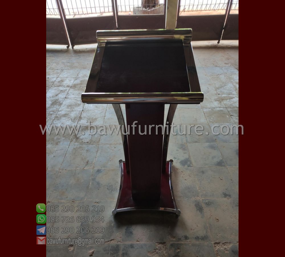 Bawufurniture.com menyediakan stock untuk produk Podium Minimalis atau Mimbar Gereja yang tepat untuk keperluan pidato. Tentunya kami menggunakan bahan kualitas bagus dan dikerjakan langsung oleh pengerajin jepara yang profesional. Sehingga terjamin akan mutu dan kualitas produk podium yang kami produksi. Untuk itu, produk dari bawufurniture.com adalah pilihan paling tepat untuk sarana pidato atau ceramah.