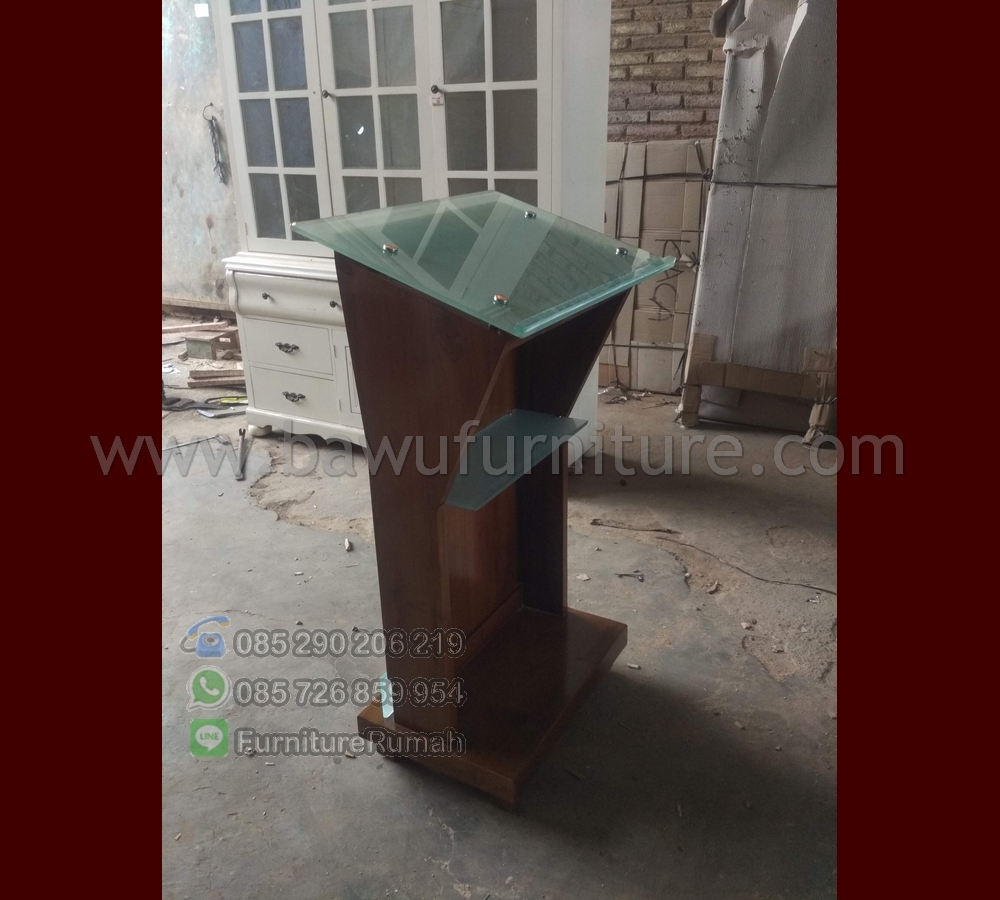 Podium Minimalis Jati, dengan menggunakan bahan kayu jati yang solid akan menghasilkan produk yang sangat bagus dan berkualitas pastinya. kami menjadikan produk Mimbar Minimalis Jati sebagai produk kami yang menjadi lebih elegant, karena produk yang kami jual menggunakan bahan yang sangat berkualitas dan pastinya menjadi produk Mimbar Minimalis yang paling elegant, dengan menggunaakn kayu jati dan Kombinasikan dengan bahan kaca es dibagian atas top meja dan bawah sebagai ornamen untuk menjadikan lebih klasik dan modern tersebut menjadikan produk kami menjadi produk yang sangat laris dipasaran. jangan ragu dengan Harga Podium Jati yang kami berikan, karena produk dari kami Bawu Furniture menjadikan produk yang unggul dan Modern Mewah menjadikan produk kami menjadi sangat trend saat ini.
