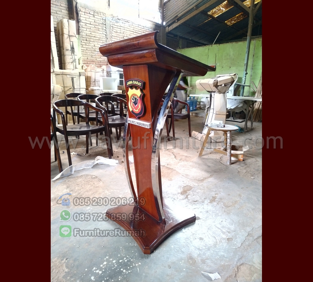 Info Jual dan Harga Podium Pidato Polres Indramayu Kayu Jati Solid Kombinasi Stainless