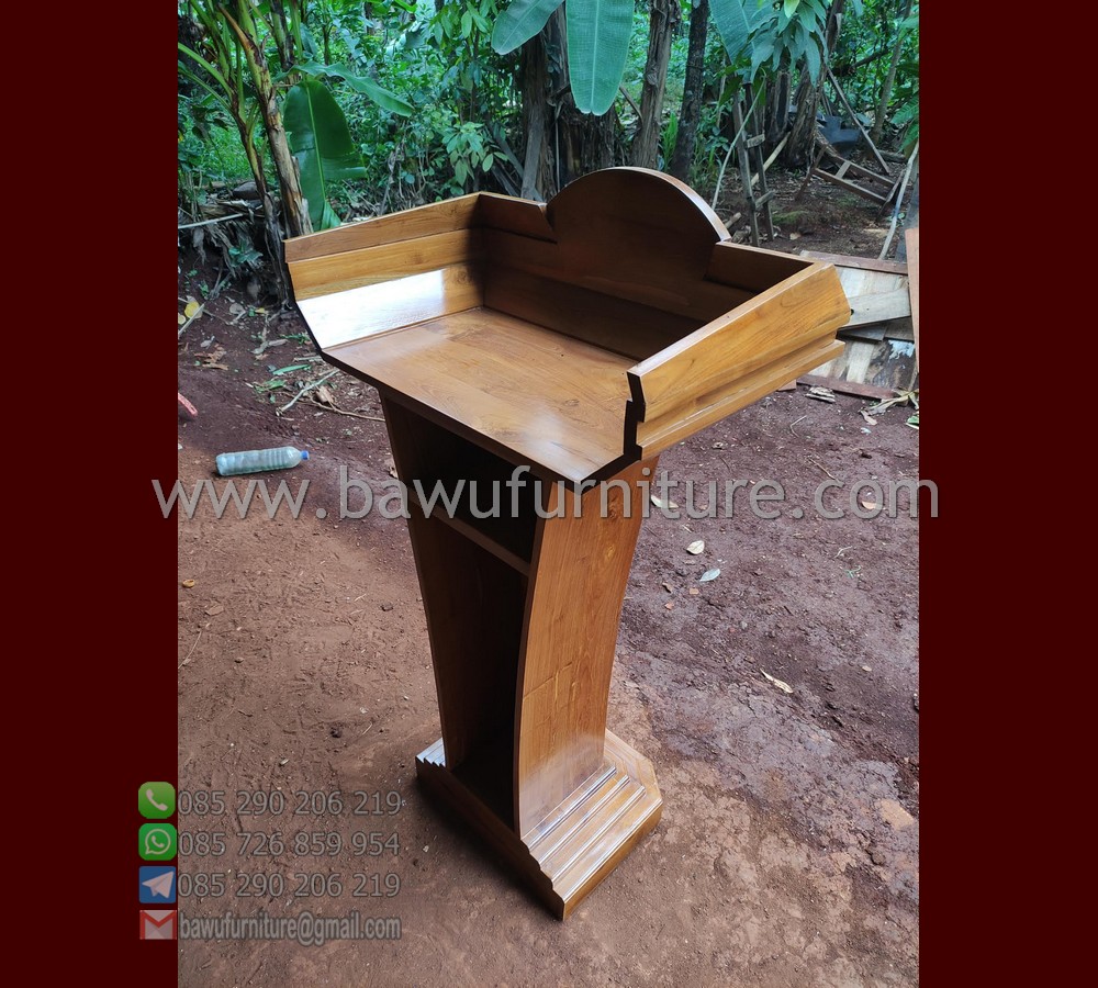 Jual Podium Pidato SMP model minimalis terbaru karya jepara yang sangat populer dengan harga jual paling murah. Serta produk ini bisa anda pesan secara online di bawufurniture.com dengan aman dan terpercaya. Dan cara pemesanannya sangat mudah dan gampang sekali.