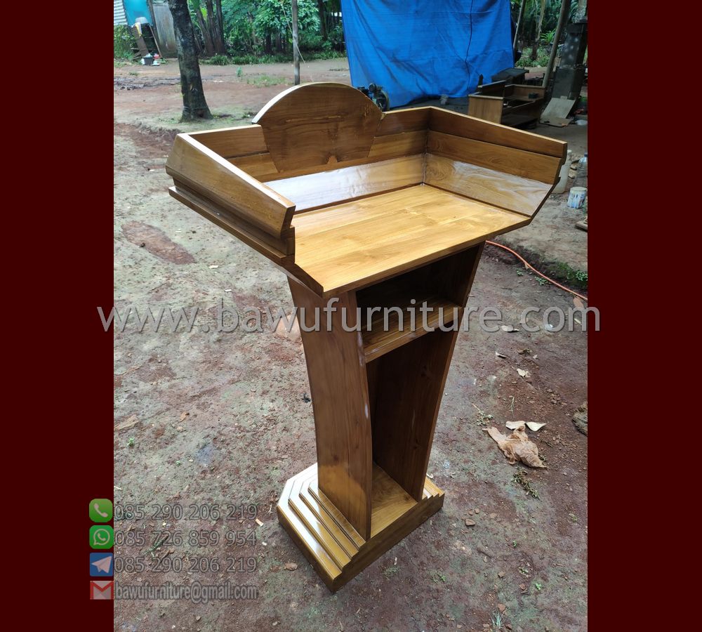 Bawufurniture menyediakan stock untuk berbagai macam model produk Podium Jepara atau Mimbar yang bisa anda pesan secara online. Dimana stock yang tersedia hanya untuk mentahannya saja / belum difinishing. Sehingga anda bisa memesan warna finishing sesuai dengan keinginan anda. Dan anda juga bisa memesan logo sesuai dengan kehendak anda.